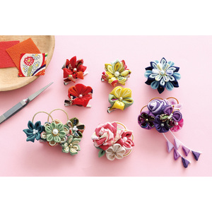 ★\カット済みの布を折るだけ/初めてのつまみ細工 簡単なつまみ方からスタートするので、不器用さんでも気軽に楽しめます♪ ●ちりめん生地はすべてカット済み♪ 【コレクション内容】 12月:一重のお花をつくろう、1月:二重のお花をつくろう、2月:立体的な大きめのお花をつくろう、3月:小花と異素材を組み合わせよう、4月:花束のような作品をつくろう、5月:集大成!大きな髪飾りに仕上げよう ●セット内容/カット済みちりめん生地、パーツ類、クリップピン、作り方説明書など●素材/ちりめん生地:レーヨンなど●サイズ/一重のお花をつくろう:約直径3.5cm(金具含まず)など●用意する物/手芸用接着剤、はさみ(先が細いものを推奨)、ものさし、先丸ペンチ(丸ヤットコ、ニッパー)など