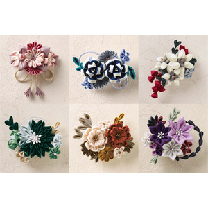 ★彩り咲かせるつまみ細工 晴れの日も普段使いにも活躍♪ 針も糸も使わず簡単なので作って楽しく、飾っておしゃれに♪ 【コレクション内容】 5月:中紅花、6月:濃藍、7月:白花、8月:柚葉、9月:香染、10月:浅紫 ●セット内容/布、パーツ類、クリップピン、作り方説明書など ●素材/布:綿、ポリエステルなど ●サイズ/中紅花:約縦8.5×横8cmなど ●用意する物/ものさし、チャコペン(消せるタイプ)、鉛筆、はさみ、手芸用接着剤、スティックのり、先丸ペンチ(丸ヤットコ、ニッパー)、目打ち、つまようじ、洗濯ばさみなど