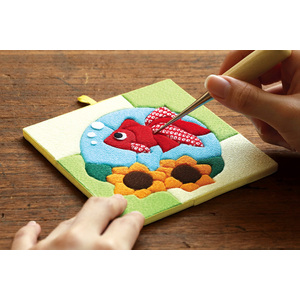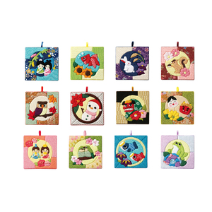 ★きめこみで魅せる季節飾り 切り込みを入れたボードにちりめん生地を目打ちで押し込んで作る「きめこみ」。布端の処理を気にせずに気軽に作れるので、初心者さんにもおすすめです 【コレクション内容】 5月:笹飾りと七夕、6月:向日葵と金魚、7月:桔梗とうさぎ、8月:秋桜とりす、9月:紅葉とふくろう、10月:ポインセチアと雪だるま、11月:椿と獅子舞、12月:福寿草と節分、1月:桃とお雛様、2月:桜と鶯、3月:菖蒲と鯉のぼり、4月:紫陽花とかえる ●セット内容/ちりめん生地、リボン、厚紙、発泡ボード、パーツ類、作り方説明書など ●素材/ちりめん生地:レーヨン、リボン:ナイロンなど ●サイズ/約縦12×横12×厚さ0.7cm(つりひも含まず) ●用意する物/デザインナイフ、はさみ、手芸用接着剤、ものさし、目打ち、ピンセット、チーク、両面テープ、チャコペン(消せるタイプ)など
