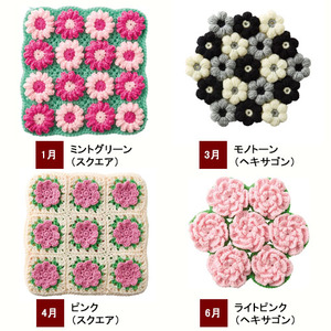 『かぎ針編みのざぶとん手作りキット』 愛らしさあふれるモチーフざぶとんを「かぎ針編み」で作れます。様々な編み方を習得できます。 【アクリル100%の毛糸でさくさく編みやすく、色も多彩。立体モチーフなどもあり、編み方のバリエーションも楽しめます。】 <ご用意いただくもの> 7/0号かぎ針、はさみ、とじ針 ・1月「ミントグリーン(スクエア)」・2月「ブルー(サークル)」・3月「モノトーン(ヘキサゴン)」・4月「ピンク(スクエア)」・5月「ホワイト(サークル)」・6月「ライトピンク(ヘキサゴン)」・・・毎月1セット、全6回お届け。 ■セット内容/毛糸、作り方説明書 ■サイズ/商品によって異なります【一例】1月:約30×30cm ■主材/アクリル100% ■キット製造/日本