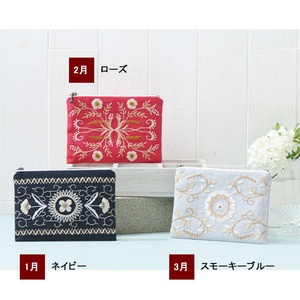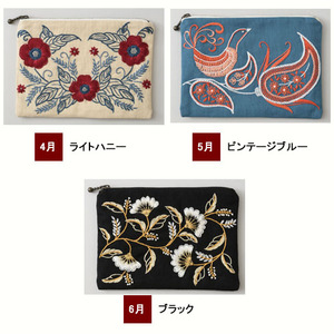 『アラベスク刺しゅうポーチキット』 使いやすいサイズのポーチ。シックな色とモチーフがデザインされた刺しゅうキット。 【下絵はあらかじめ生地に印刷済なのですぐに刺しゅうにかかれます。基本的なステッチの繰り返しで模様を刺します。】 <ご用意いただくもの> 刺しゅう枠、はさみ、印付け道具、ものさし、縫い針、縫い糸、仮止めクリップ、アイロン ・1月「ネイビー」・2月「ローズ」・3月「スモーキーブルー」・4月「ライトハニー」・5月「ビンテージブルー」・6月「ブラック」」・・・毎月1セット、全6回お届け。 ■セット内容/下絵印刷済刺しゅう布、内布、刺しゅう糸、刺しゅう針1本、ファスナー、作り方説明書 ■サイズ/約横17×縦12cm ■主材/紙綿、鋼など ■キット製造/日本
