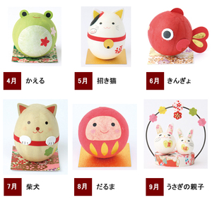 『美濃和紙でつくる手作りキット』 ころんと揺れて、心なごむ 美濃和紙で作る、愛らしい和紙人形キット。 【和紙などのパーツを貼るだけでかんたんに作れる起き上がりこぼしと、ゆらゆら揺れるモビール飾りが作れる手づくりキットです。 日本の伝統工芸品、岐阜県の美濃和紙を使用しています。】 <ご用意いただくもの> のり、はさみ、手芸用接着剤、セロハンテープなど ・3月「こどもの日」・4月「かえる」・5月「招き猫」・6月「きんぎょ」・7月「柴犬」・8月「だるま」 ・9月「うさぎの親子」・10月「ふくろう」・11月「ししまい」・12月「赤おに」・1月「おひなさま」・2月「うさぎ」・・・毎月1セット、全12回お届け。 ■セット内容/美濃和紙人形本体、和紙パーツ、型抜き紙、作り方説明書、付属品:(3月・9月・1月)モビール飾り台座 /(その他の月)敷き紙 ■サイズ/起き上がりこぼし(約5×5×5~7cm)、モビール飾り(約10×5.5×9cm)、敷物(約5×5cm) 主材/スチロール、和紙 ■製造/日本