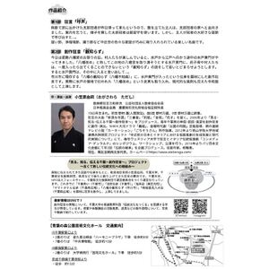 出演:小笠原由祠、小笠原弘晃(和泉流狂言師)ほか 【第一部】レクチャー&デモンストレーション 狂言「呼声」 【第二部】創作狂言「藪知らず」 ※このチケットは抽選ではございません。お申し込み順の販売となり、なくなり次第終了となります。ご注文確定後キャンセルすることが出来ませんのでご注意ください。