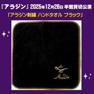 ロマンス、冒険、コメディ、そして鳴り止まない喝采。感動のすべてが詰まったミュージカル超大作。 「自由」と「未来」を求める青年と王女、そして魔人。神秘と魅惑の都・アグラバーで、「魔法のランプ」が、3人の運命を引き寄せる。 ☆貸切プレゼント対象公演 『アラジン』12/26公演限定!オリジナルグッズプレゼント ①『アラジン』12/26半館貸切公演のチケットをご注文(当選)した方の中から、抽選で20名様に「アラジン 刺繍ハンドタオル ブラック」をプレゼントいたします。 ②当落の結果については、賞品の発送をもって代えさせていただきます。 ③賞品はチケット発送時に同梱いたします。 ※過去に対象公演を購入(当選)した方も対象となります。